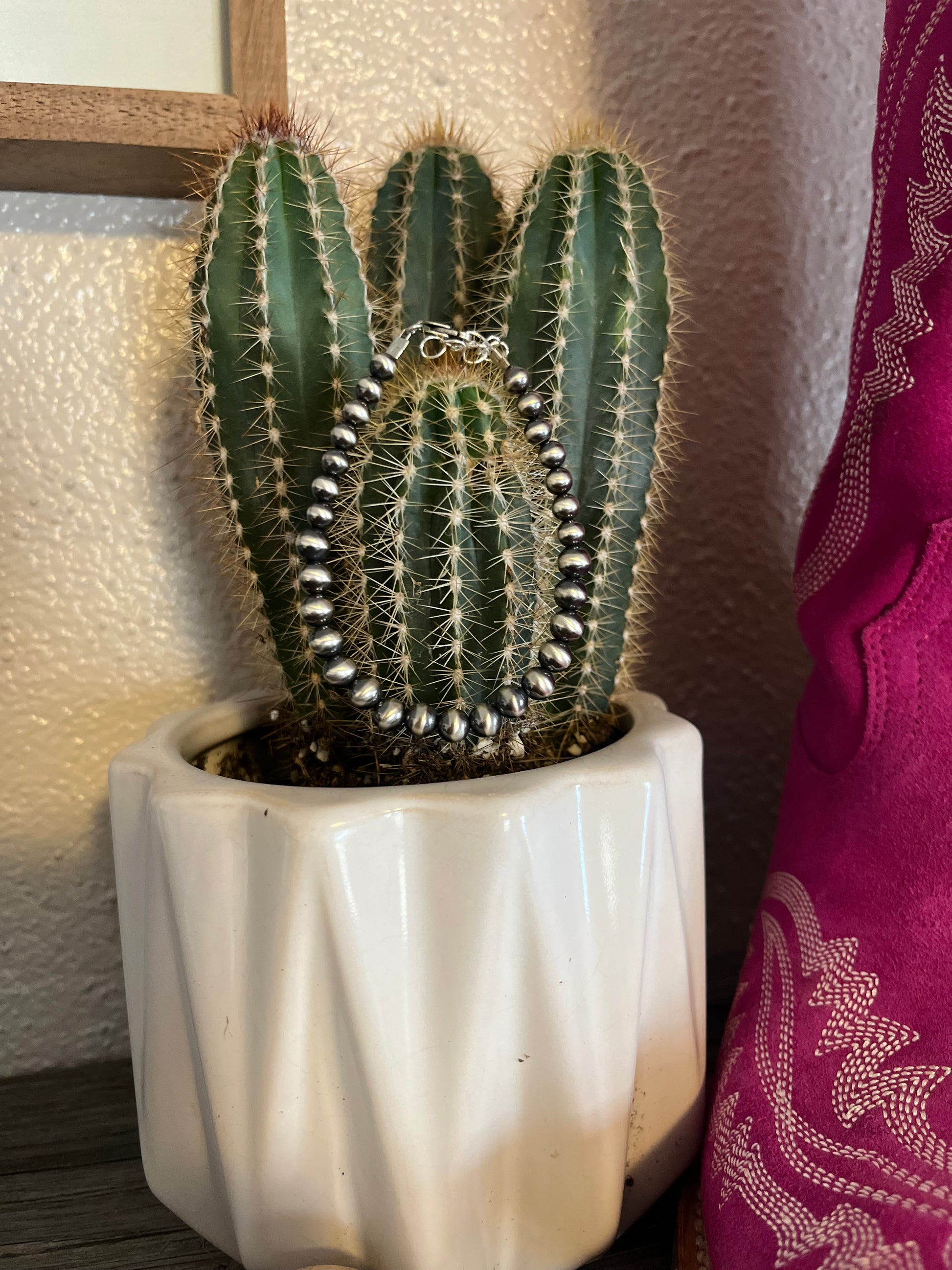 “Gun-shy is a 6mm and 5mm bracelet. It sits at 6.5” with a 1” extender.